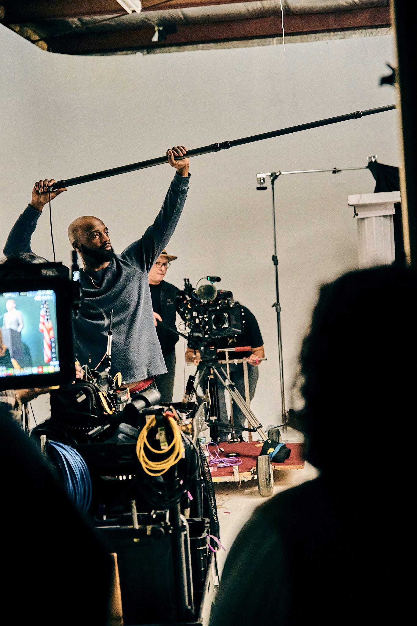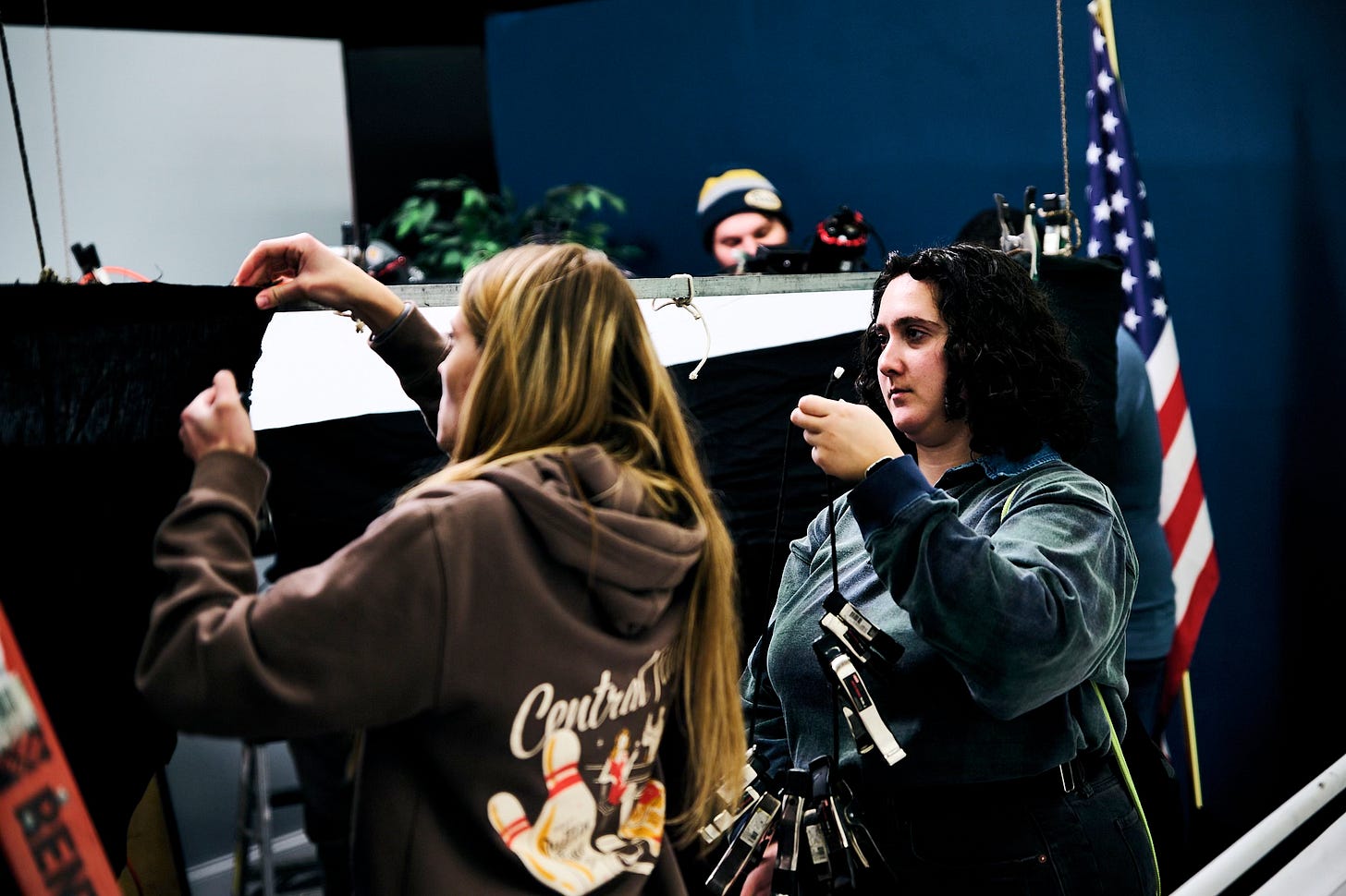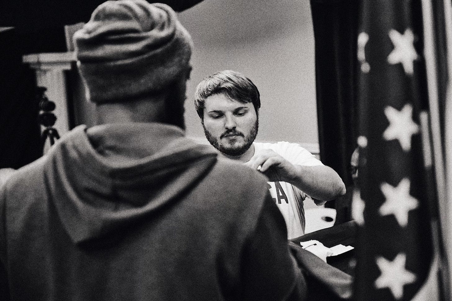 The following behind the scenes photographs were captured by Andrew Schaut, a Green Bay native whose work brings a grounded, behind the curtain perspective to the set of “the New White House.” His high contrast, black and white approach helped shape a nostalgic press room that feels both authentic and appropriately heavy for the subject.