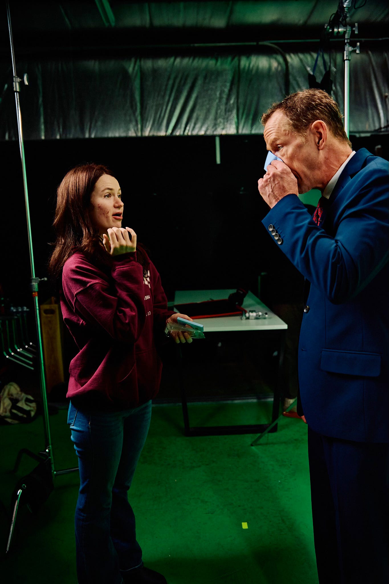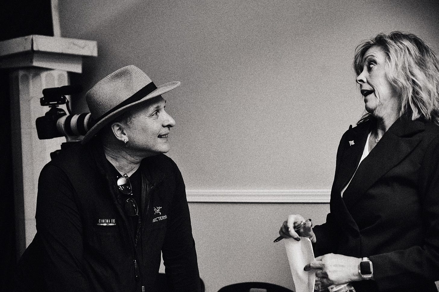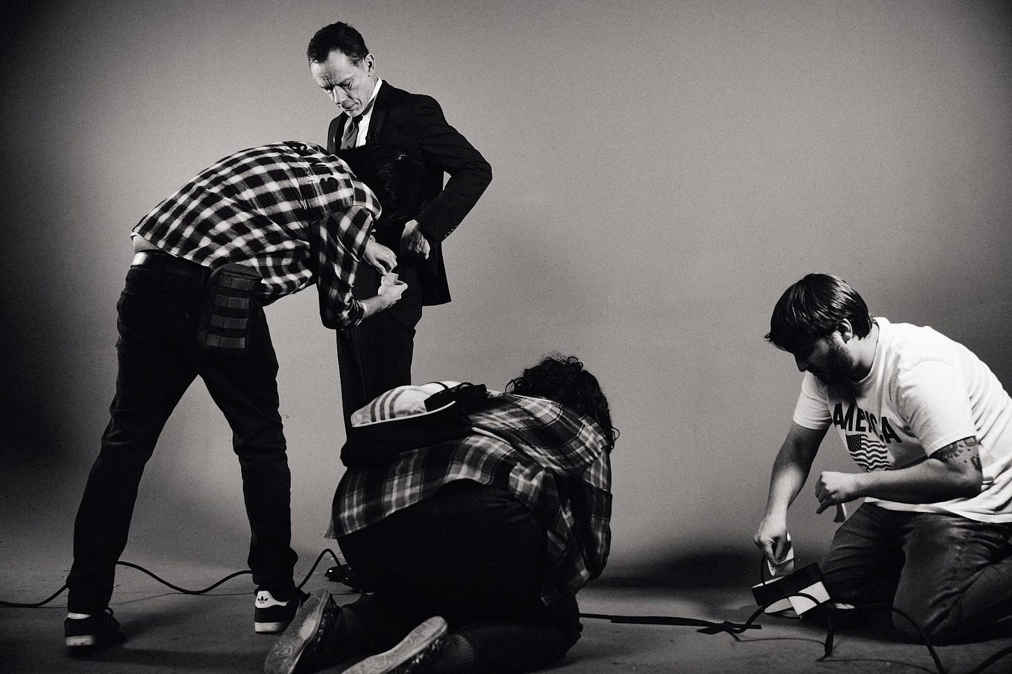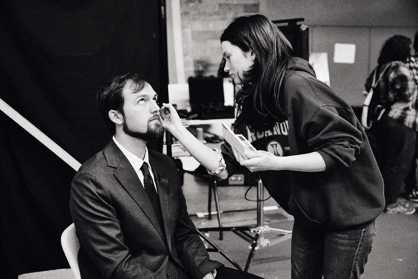 The following behind the scenes photographs were captured by Andrew Schaut, a Green Bay native whose work brings a grounded, behind the curtain perspective to the set of “the New White House.” His high contrast, black and white approach helped shape a nostalgic press room that feels both authentic and appropriately heavy for the subject.